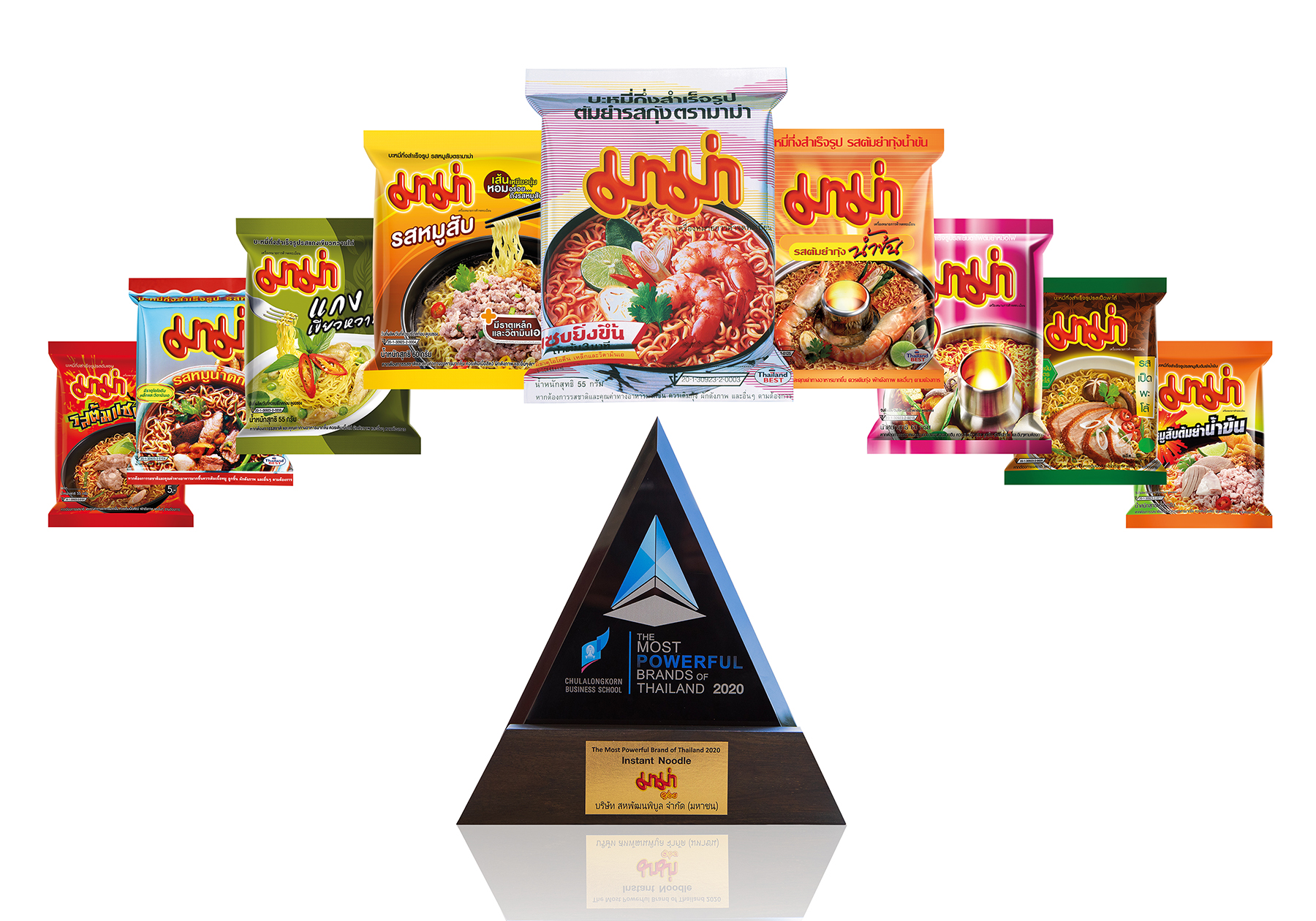 มาม่า ตอกย้ำความเป็นผู้นำและทรงพลังในตลาดบะหมี่กึ่งสำเร็จรูป ด้วยการคว้ารางวัล แบรนด์ที่ทรงพลังที่สุดในประเทศไทย หรือ The Most Powerful Brands of Thailand ในกลุ่มผลิตภัณฑ์บะหมี่กึ่งสำเร็จรูป จากภาควิชาการตลาด คณะพาณิชยศาสตร์และการบัญชี จุฬาลงกรณ์มหาวิทยาลัย ที่ได้ทำการวิจัยจากกลุ่มตัวอย่างที่มีตัวอย่างมากที่สุด