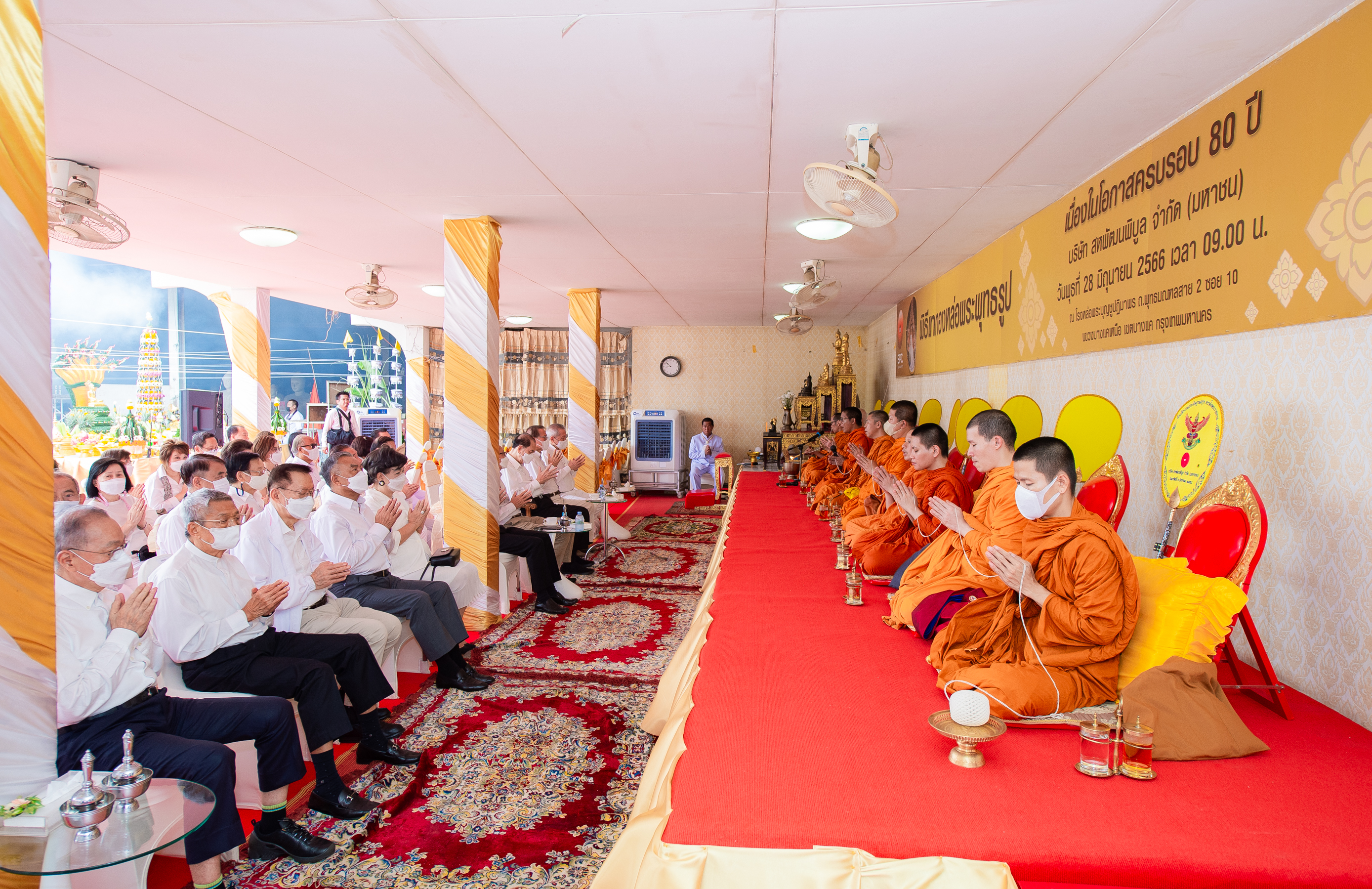 นายบุณยสิทธิ์ โชควัฒนา ประธานเครือสหพัฒน์ พร้อมด้วยคณะผู้บริหารเครือสหพัฒน์ และแขกผู้มีเกียรติ ได้แก่ ดร.ศิรินา ปวโรฬารวิทยา นายบุญชัย โชควัฒนา ประธานกรรมการ บริษัท สหพัฒนพิบูล จำกัด (มหาชน) นายบุญเกียรติ โชควัฒนา ดร.สมคิด จาตุศรีพิทักษ์ นายอภิสิทธิ์ เวชชาชีวะ พลเอก ธีรเดช มีเพียร นายสุจริต ปัจฉิมนันท์ นายบุญฤทธิ์ มหามนตรี นายพิพัฒ พะเนียงเวทย์ นายอภิชาติ ธรรมมโนมัย และนายวศิน เตยะธิติ ร่วมพิธีเททองหล่อพระพุทธรูป เนื่องในโอกาสครบรอบ 80 ปี ของ บริษัท สหพัฒนพิบูล จำกัด (มหาชน) เพื่อถวายเป็นพุทธบูชาให้กับวัดต่าง ๆ ใช้ในพิธีการวันสำคัญของทางวัด สืบทอดพระพุทธศาสนาเป็นพุทธานุสสติแก่พระพุทธศาสนิกชนทั้งหลาย