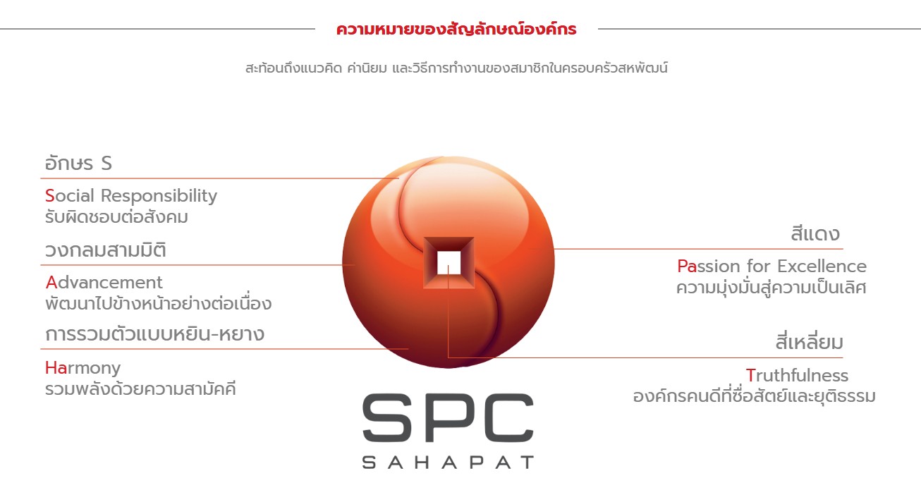 เครื่องมือสำคัญในการส่งผ่านความแข็งแกร่งของแบรนด์องค์กร พร้อมสื่อสารออกไปภายนอกด้วยโลโก้ (Logo) ของสหพัฒนพิบูลในปัจจุบัน ที่ใช้ตัวย่อภาษาอังกฤษ “SPC” (SAHAPAT) สะท้อนวิถีการทำงานร่วมกันกับผู้มีส่วนเกี่ยวข้องที่ประกอบเป็นค่านิยมองค์กร (Core Value) อย่างชัดเจน ดังนี้