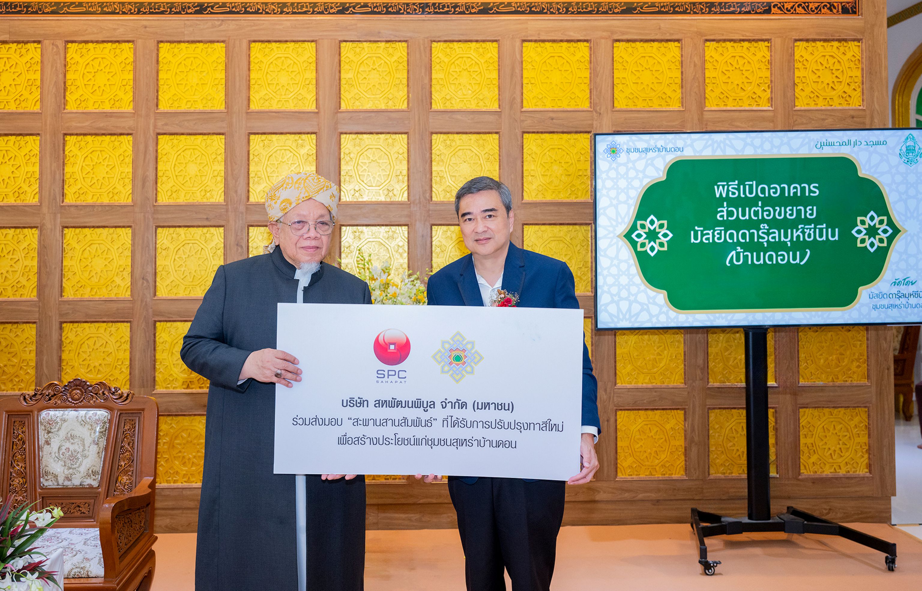 ในโอกาสเดียวกันนี้ นายอภิสิทธิ์ เวชชาชีวะ รองประธานกรรมการ ยังได้เข้าร่วมพิธีเปิดอาคารส่วนต่อขยาย “มัสยิดดารุ๊ลมุห์ซีนีน” (บ้านดอน) ซึ่งสร้างขึ้นเพื่อรองรับจำนวนสัปปุรุษและกิจกรรมทางศาสนาที่เพิ่มขึ้นอย่างต่อเนื่อง โดยอาคารส่วนต่อขยายแห่งใหม่นี้ เป็นอาคารคอนกรีตเสริมเหล็ก 2 ชั้น ขนาด 36 ตารางวา จะช่วยอำนวยความสะดวกให้แก่พี่น้องชาวมุสลิม และส่งเสริมการประกอบศาสนกิจให้สมบูรณ์ยิ่งขึ้น