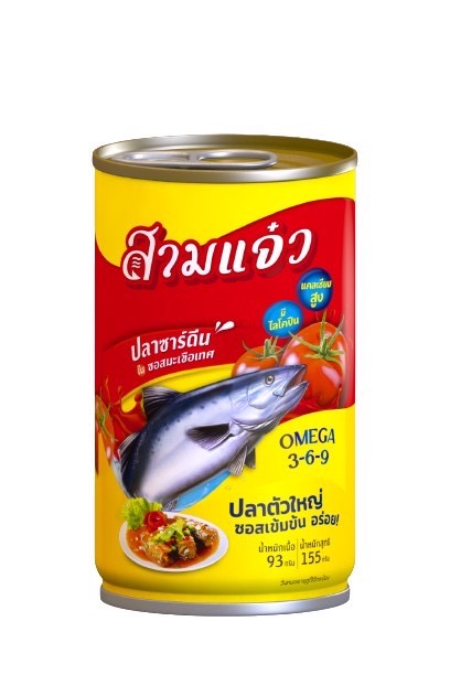 สามแจ๋ว ปลากระป๋อง ผลิตจากปลาซาร์ดีน ปลาตัวใหญ่นำเข้าจากญี่ปุ่น ซอสมะเขือเทศเข้มข้น พร้อมคุณประโยชน์เต็ม ๆ มีแคลซียมสูง ไลโคปีน บำรุงผิวพรรณ ช่วยต้านอนุมูลอิสระ และโอไมก้า 3-6-9