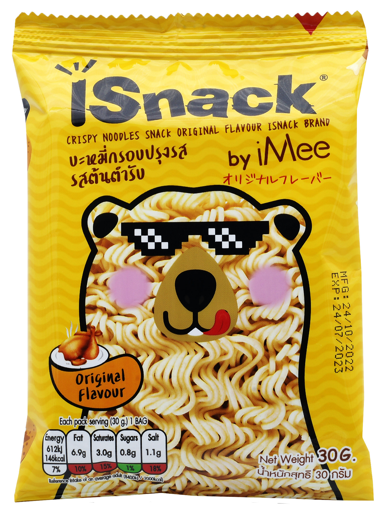 ไอสแน็ค แบรนด์ขนมบะหมี่กรอบปรุงรส รสชาติกลมกล่อม สะดวก ทานง่ายไม่เปื้อนมื้อ อร่อยเคี้ยวสนุก รสชาติเข้มข้นทุกคำ
