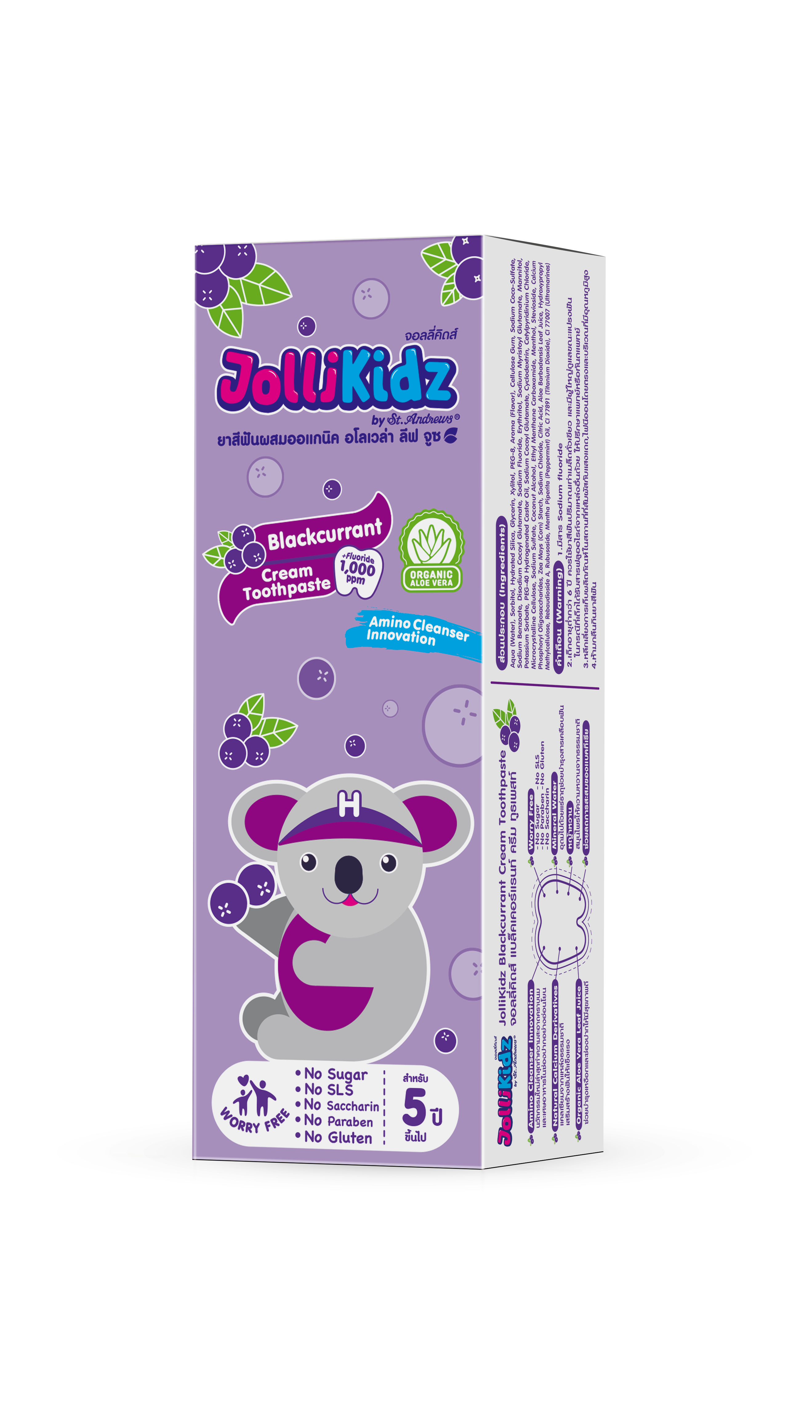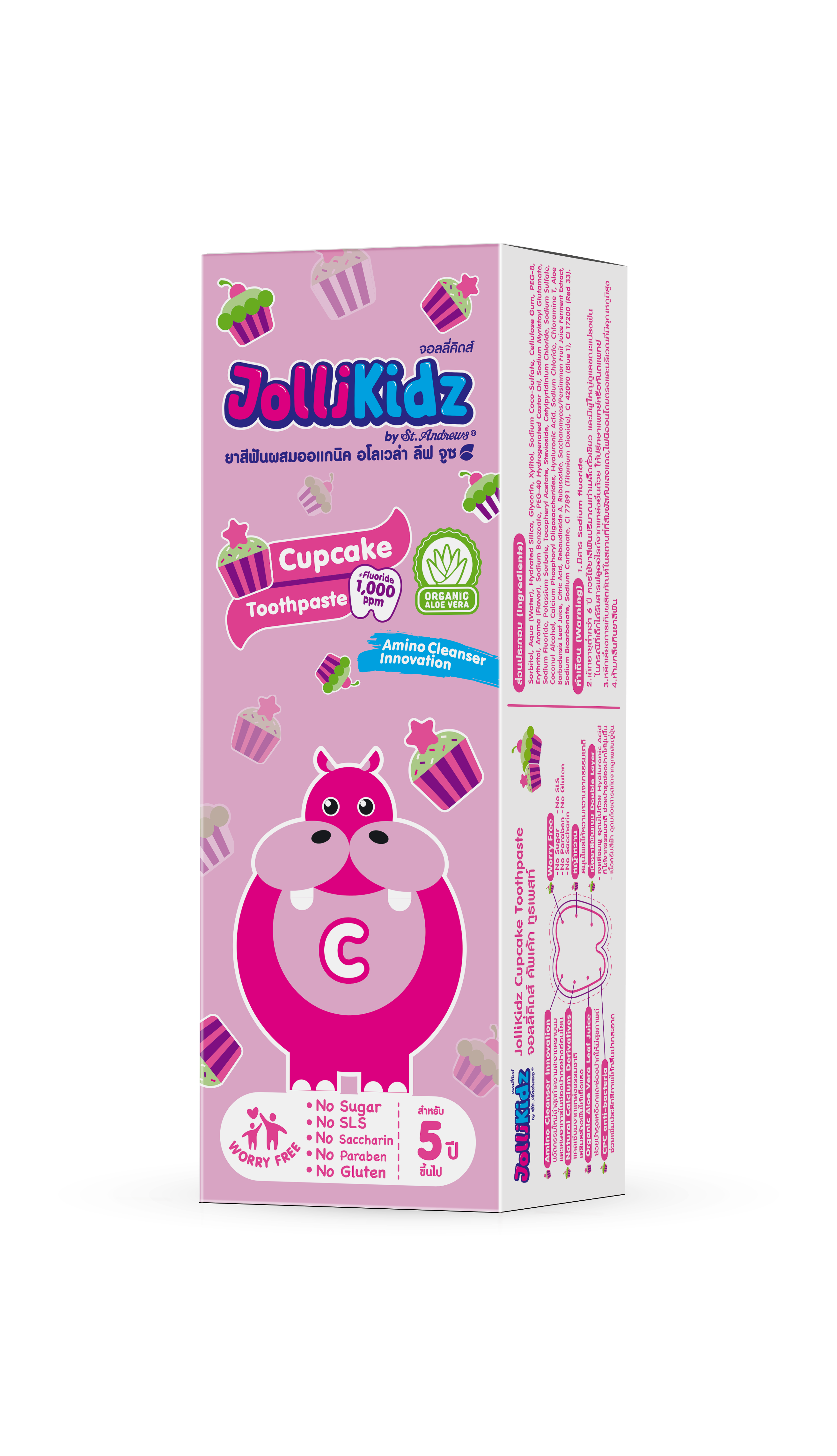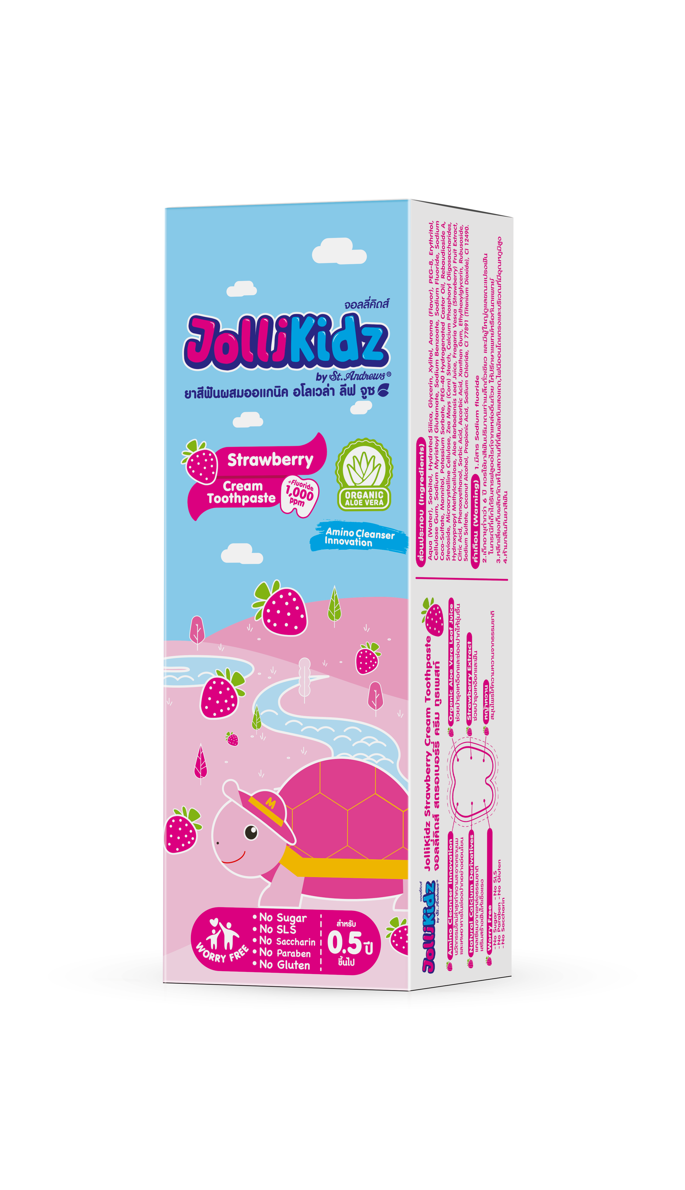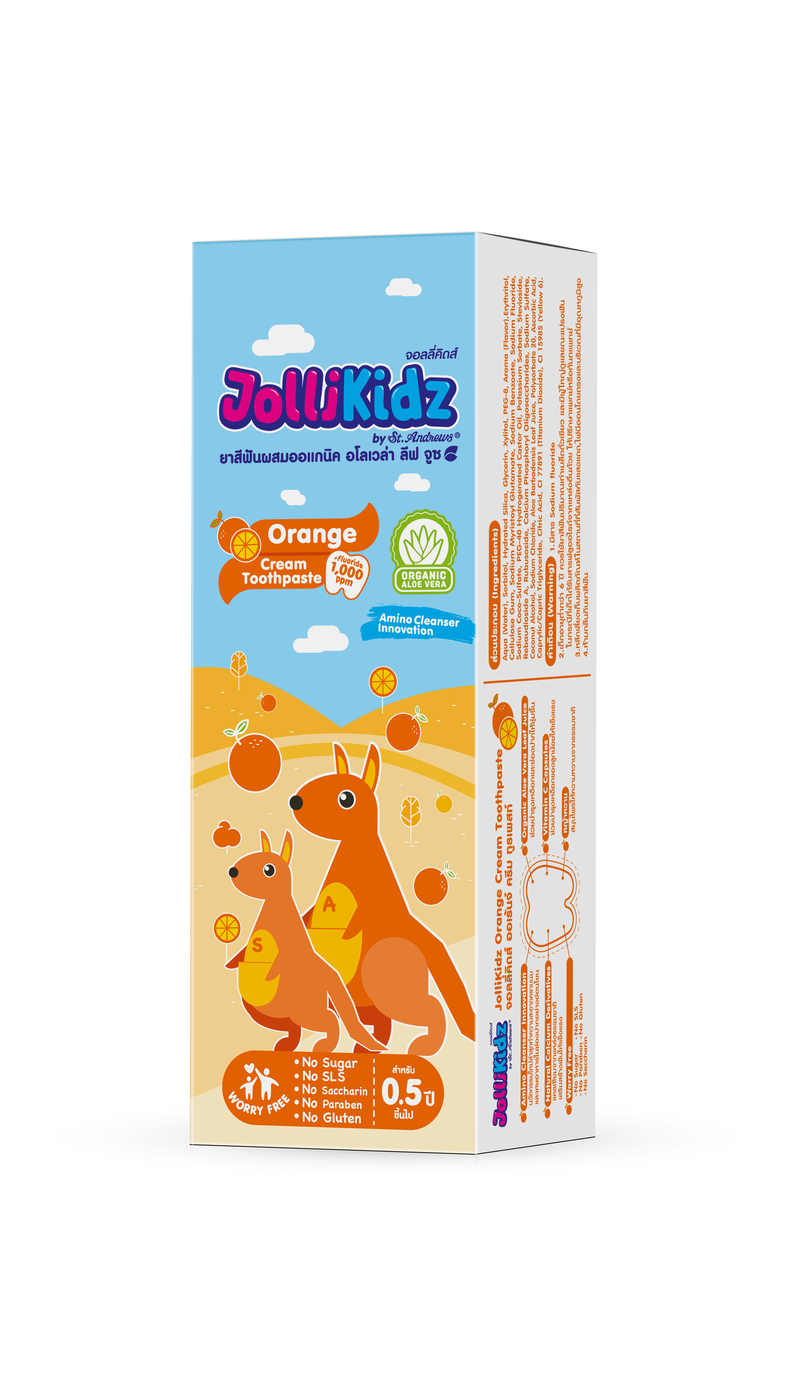 JolliKidz ยาสีฟันผสมออแกนิค ที่มีนวัตกรรมทำความสะอาดอย่างอ่อนโยน ช่วยให้ปากชุ่มชื่น ช่วยบำรุงเหงือก ช่วยลดโอกาสการเกิดการระคายเคืองในช่องปากและป้องกันภาวะปากแห้ง พร้อมช่วยลดการสะสมของแบคทีเรียบนผิวฟัน นวัตกรรมใหม่ทำความสะอาด คราบนมและเศษอาหาร ปลอดภัยต่อเด็ก ไม่มีสารเคมีสะสม