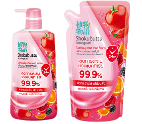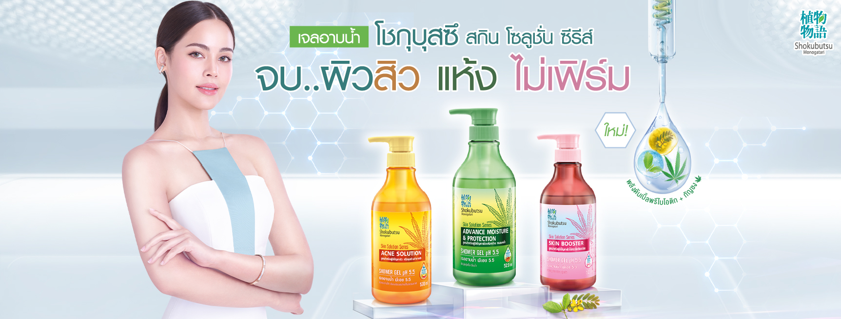 โชกุบุสซึ โมโนกาตาริ เจลอาบน้ำสูตรอ่อนโยน ที่ช่วยปรับสมดุลผิวให้แข็งแรง (pH 5.5) และมีคุณสมบัติช่วยแก้ไขปัญหาผิวกายที่กวนใจผู้บริโภค อาทิ ปัญหาสิว, ผิวหย่อนคล้อย, ผิวแห้งขาดน้ำ มาพร้อมกลิ่นหอมที่เป็นเอกลักษณ์เฉพาะสูตร อาบน้ำทั้งทีต้องครบทั้งกลิ่นหอมและผิวสวย