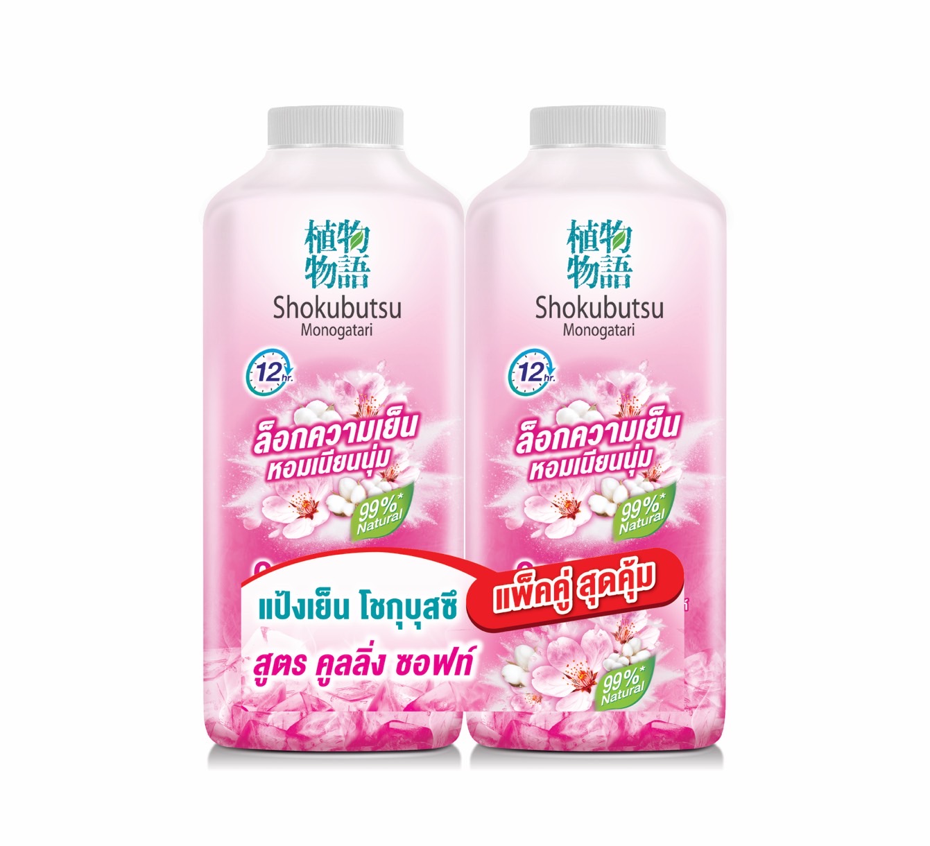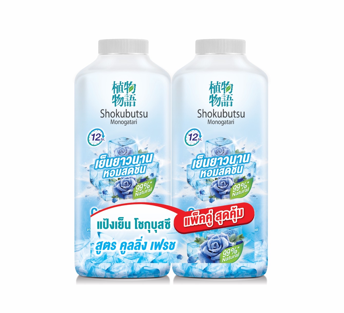 โชกุบุสซึ โมโนกาตาริ แป้งเย็น เย็นสดชื่น หอมละมุนไร้กังวลเรื่องกลิ่นกายตลอดวัน ด้วย Double Cooling Crystal ให้คุณรู้สึกเย็นทันทีและยาวนาน ผ่านการทดสอบการระคายเคืองจากบริษัท Dermscan Asia Co.,Ltd.